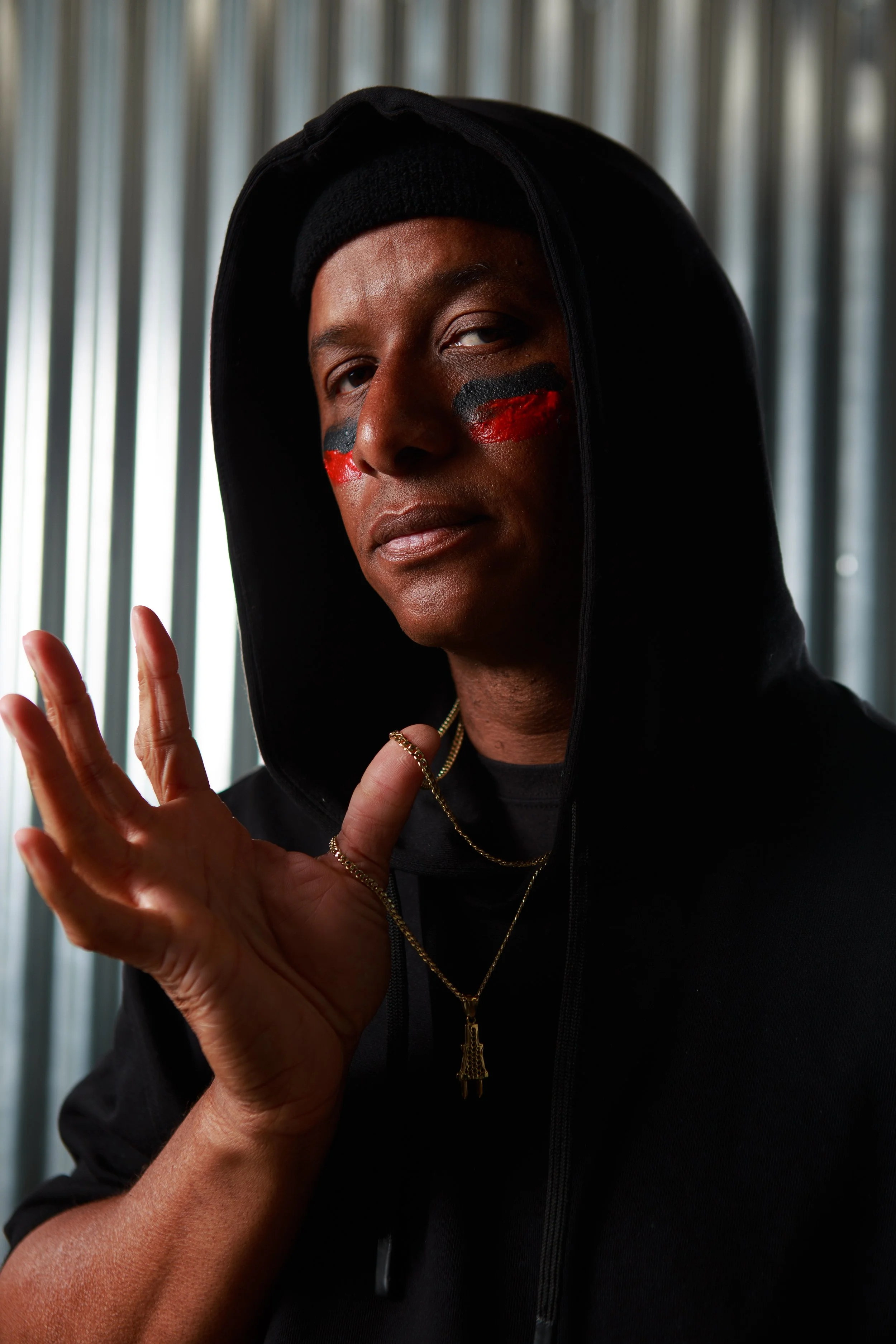“I used to feel like I was in a box. Even though that box was cool and successful, I didn’t feel like I had a voice. ‘Cause I don’t rap, I don’t sing. Basically, whoever I’m with, what they say is my voice in a way. People can interpret beats in any way, but with lyrics, it is pretty straightforward,” he says, after experimenting with his voice in some of his latest sounds. “It’s been hard building things back up, but I’m in a way better mental place. I can do whatever I want; I feel free.”